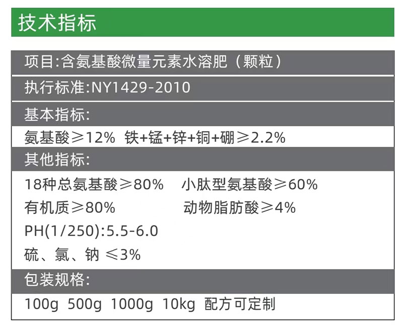 產(chǎn)品富含多種必需氨基酸及微量元素,如谷氨酸、賴氨酸等,可被植物直接吸收利用。其水溶性特質(zhì)使其能快速滲透根系或葉面細(xì)胞,顯著提升養(yǎng)分吸收效率,尤其適用于高價(jià)值作物對(duì)精準(zhǔn)營養(yǎng)的需求。